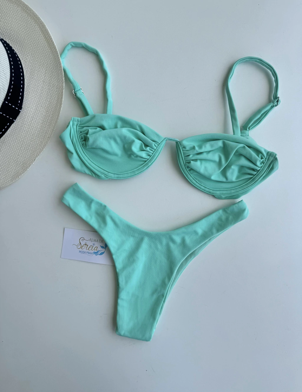 Top com aro inteiro, confeccionado em tecido sustentável, com amarração nas costas e alças reguláveis((antioxidante) para ajuste ideal.